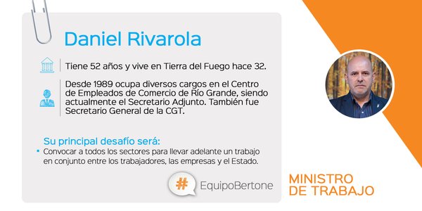 20/01/2016 - El ministro de Trabajo Daniel Rivarola presentó su renuncia por "razones personales" a poco de completar el primer mes de su designación por parte de la gobernadora Rosana Bertone.