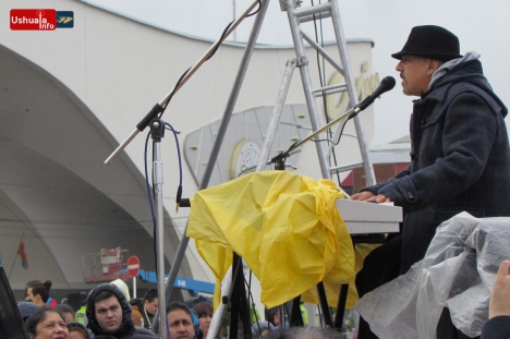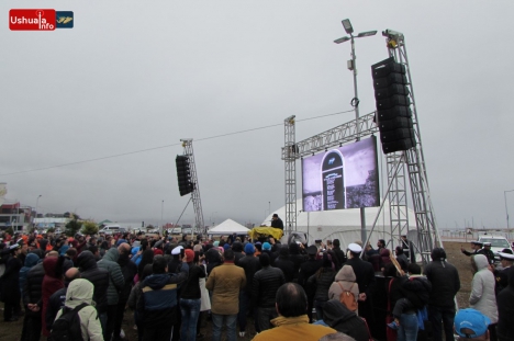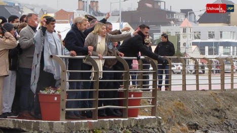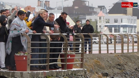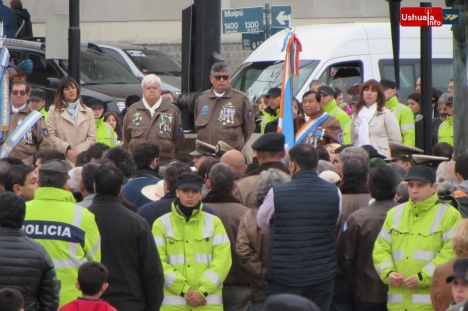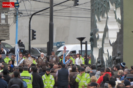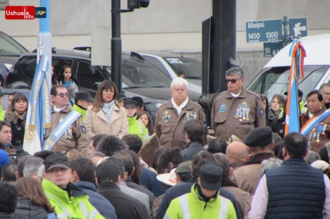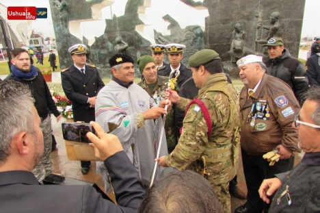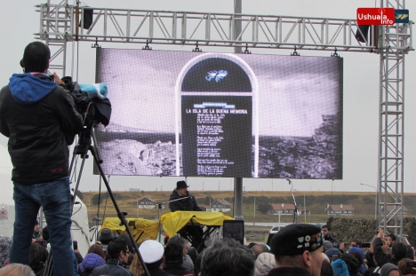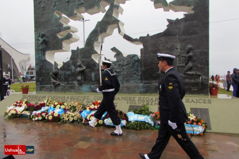 El acto estuvo presidido por la gobernadora Bertone, el vicegobernador Arcando, el intendente Vuoto, el ministro del interior Rogelio Frigerio y el presidente del Centro de Excombatientes en Ushuaia VGM Carlos Latorre. Promediando el discurso de la gobernadora comenzó a llover, hecho que no mermó la participación del público que acompañó el acto hasta su finalización. Pasadas las 13:00 hs. las autoridades se dirigieron a la explanada sobre la bahía para arrojar claveles en memoria de los caídos y acto seguido el artista Alejandro Lerner, interpretó sus canciones "La Isla de la Buena Memoria" y "Aquellos otros" -de la banda de sonido del film "Soldado Argentino sólo conocido por Dios".