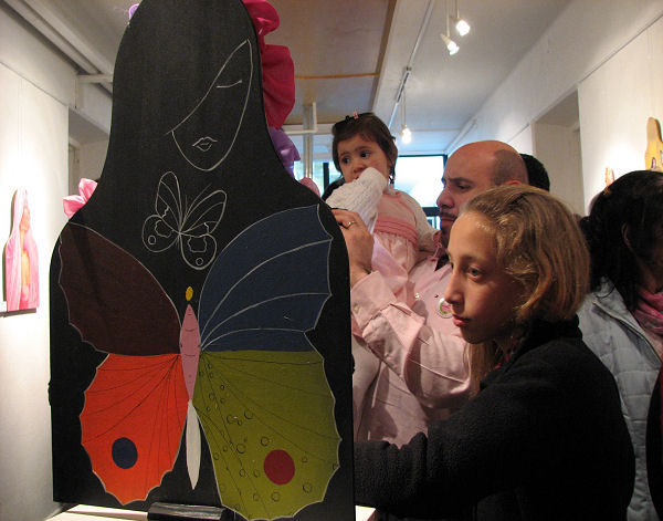 02/10/2009 - El Pabellón 3 del Museo MarÃtimo de Ushuaia fue el elegido para el montaje de la muestra colectiva de arte Ponele al Pecho, una propuesta a la que se sumó una gran cantidad de artistas plásticos de Ushuaia interviniendo artÃsticamente un soporte con forma de silueta que fue provista por la organización del evento.