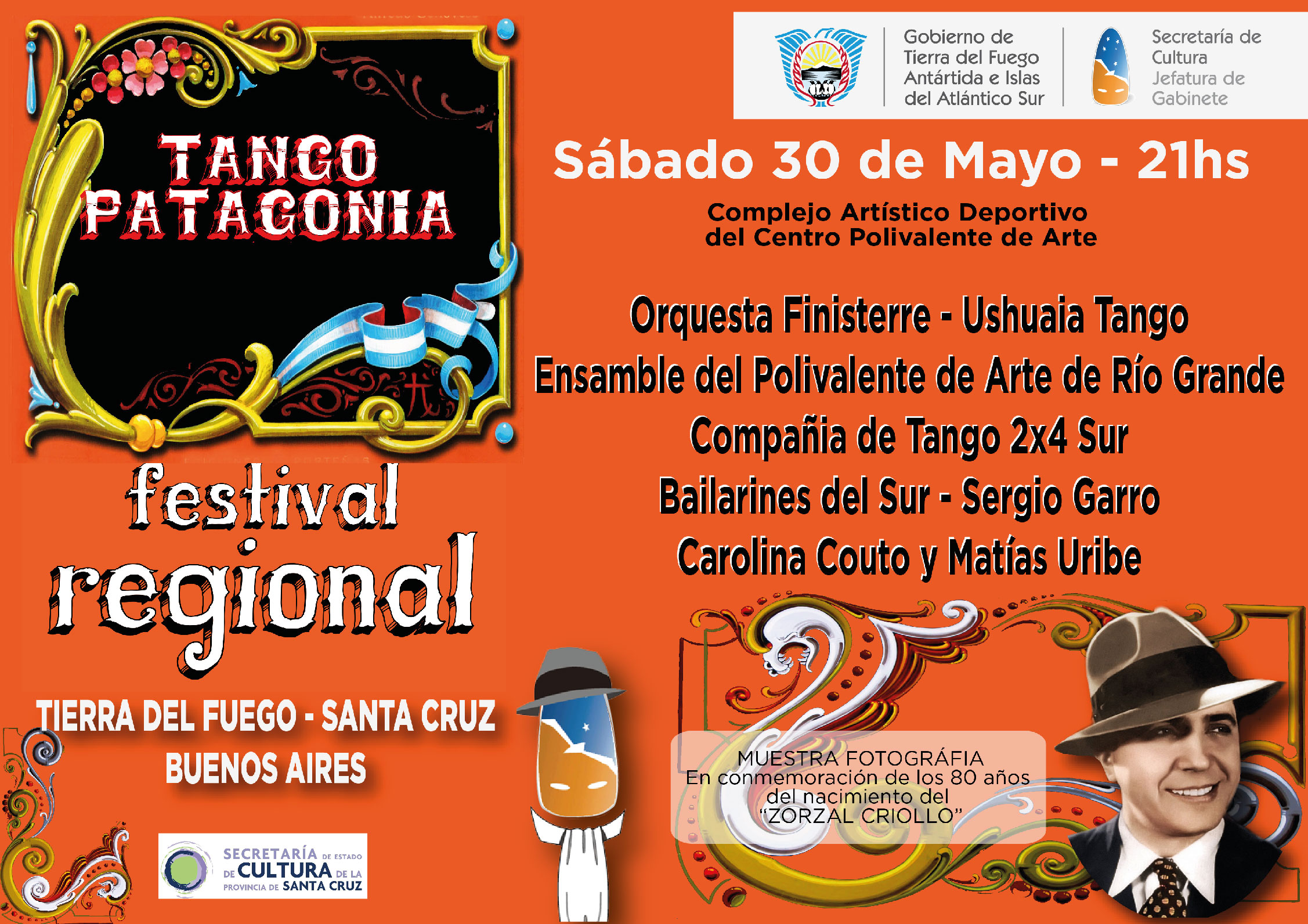 El programa incluye la actuación de la Orquesta Finisterre -de la ciudad de Buenos Aires-, el grupo Ushuaia Tango, el Ensamble del Polivalente de Arte de Río Grande, la compañía de Tango 2x4 Sur de la ciudad de Río Gallegos, la agrupación Bailarines del Sur y los tangueros de Ushuaia Sergio Garro, Carolina Couto y Matías Uribe. Además, habrá servicio de buffet y pista para bailar toda la noche al compas del 2x4. La muestra fotográfica tendrá como eje la conmemoración de los 80 años del fallecimiento de Carlos Gardel. La vida del "Zorzal Criollo" será repasada en una emotiva colección de imágenes cedidas por Elio Gelbort, creador del espacio televisivo y radial "El Tango y su historia".Visitas: 4608