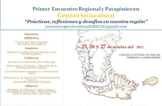 23/10/2012 - Se llevará a cabo en nuestra ciudad el Primer Encuentro Regional y Patagónico en Gestión Sociocultural, que se desarrollará desde el Jueves 25 hasta el Sábado 27 del corriente mes.