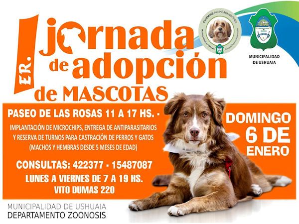 Este Domingo 6, en el día de Reyes Magos, se realizará la Primera Jornada de Adopción y Tenencia Responsable del año. Como cada primer Domingo de mes, personal de Zoonosis, voluntarios y los perritos se encontrarán en el Paseo de Las Rosas a la espera de una familia responsable que desee adoptar un amigo de cuatro patas. También se estarán realizando implantaciones de microchips, entrega de antiparasitarios y reserva de turnos para castración de perros y gatos (machos y hembras a partir de los 5 meses de edad) La jornada se desarrollará en el Paseo de las Rosas de 11:00 a 17:00 hs. Para mayor información o consultas comunicarse con el Departamento Zoonosis, Vito Dumas 220, al tel. 422377 de Lunes a Viernes de 07:00 a 19:00 hs.Visitas: 9108