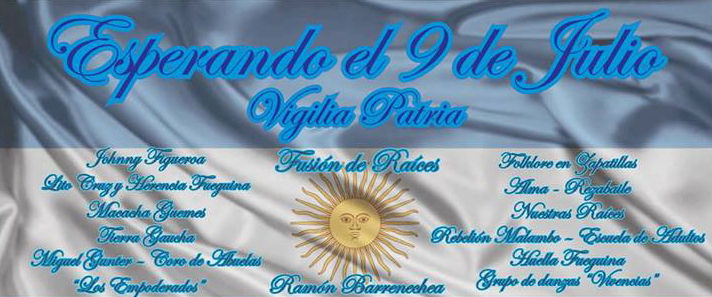 04/07/2014 - El Martes 8 de Julio de 2014 se realizará la tradicional Viglia Patriótica "Esperando el 9 de Julio" organizada por el Centro Tradicionalista "Virginia Choquintel".