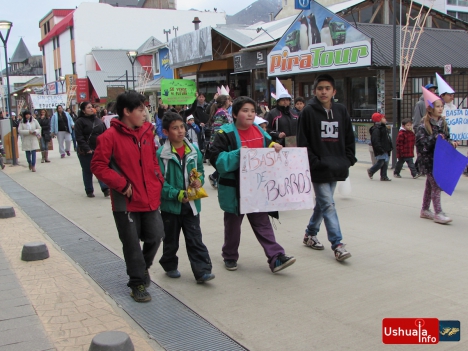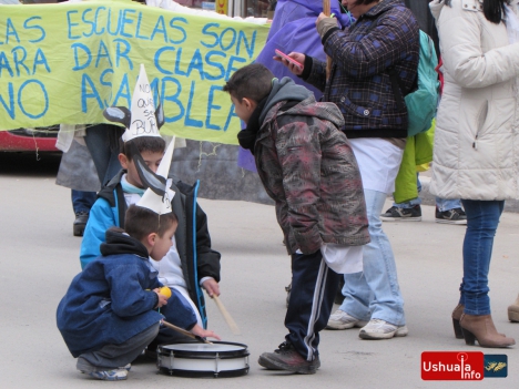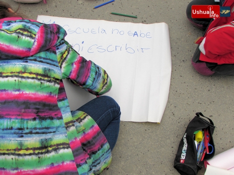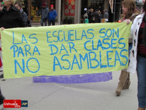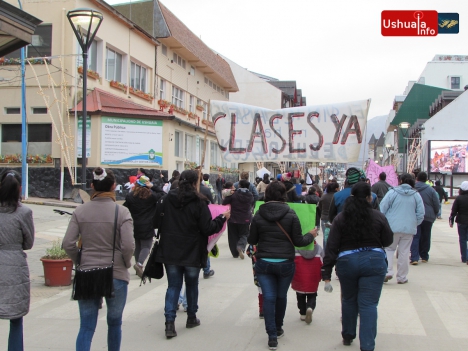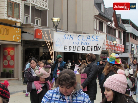 14/05/2015 - Esta tarde, pasadas las 16:00 hs. unas cien personas entre padres, madres y niños de diversas edades se movilizaron por la calle San Martín con banderas, afiches escritos por los chicos, carteles que rezaban el deseo de regreso a clase, gorros con orejas de burro, silbatos y bombos. Acompañados por el sonido de bocinas que sonaban a manera de apoyo, la columna finalizó su marcha en la Casa de Gobierno.