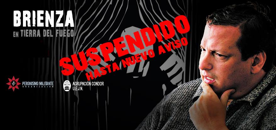 18/03/2016 - La organización Peronismo Militante Ushuaia informó que se suspendió la presentación que el escritor Hernán Brienza iba a realizar en Ushuaia y Río Grande.