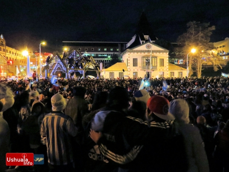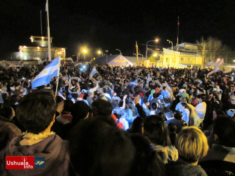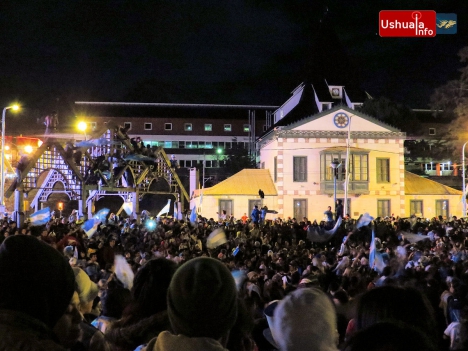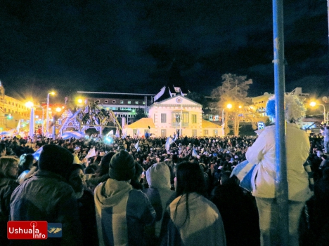 La gente salió masivamente a la calle encolumnándose por la Avenida San Martín. Desde allí bajando por la calle Lasserre, la multitud entonó los clásicos cánticos futboleros en la Plaza Cívica, en una postal que no se veía en Ushuaia desde los festejos por el nuevo milenio en el año 2000.